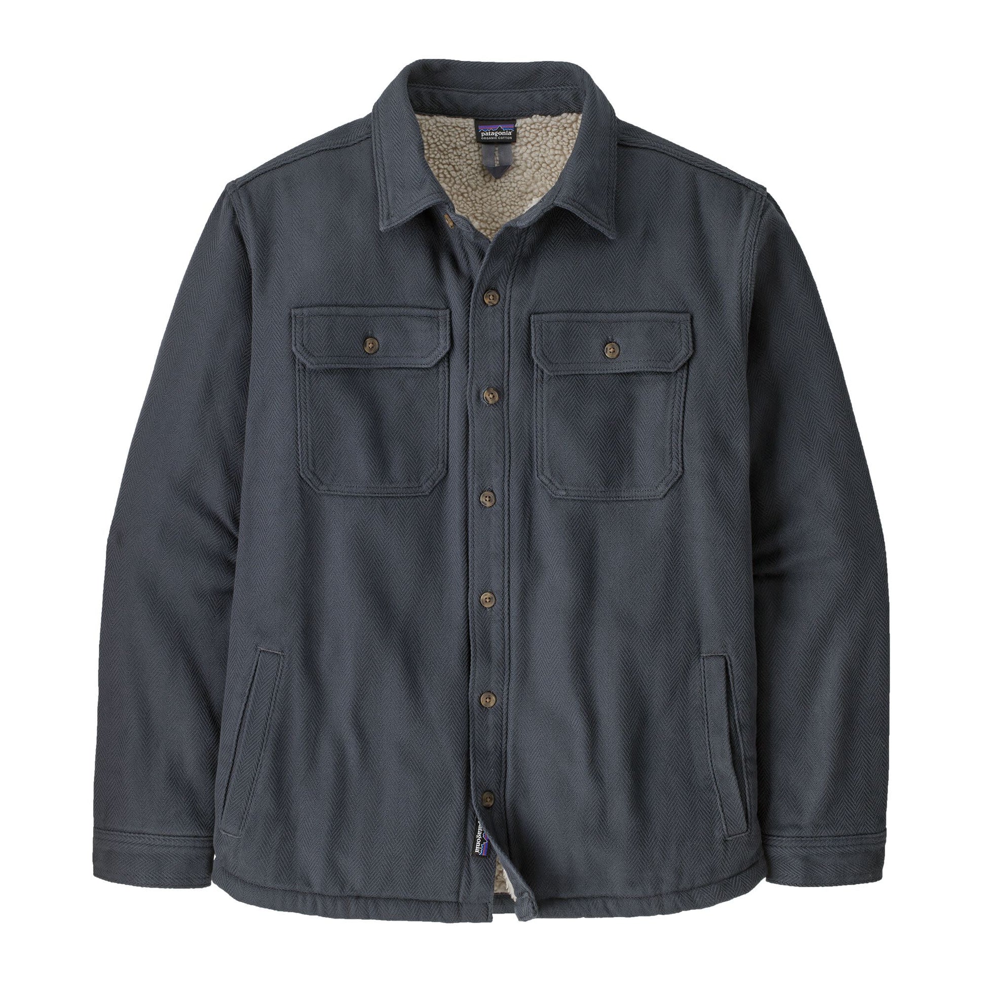Body: 9.6-oz 100% organic cotton flannel or herringbone. Torso lining: 8.7-oz 100% recycled polyester ¼"-pile fleece. Sleeve lining: 2.2-oz 100% recycled polyester taffeta certified by OceanCycle and sourced from coastal communities at risk of plastic pollution; with a durable water repellent (DWR) finish made without perfluorinated chemicals (PFCs/PFAS). Sleeve insulation: 80-g Thermogreen® 100% recycled polyester. Made in a Fair Trade Certified™ factory