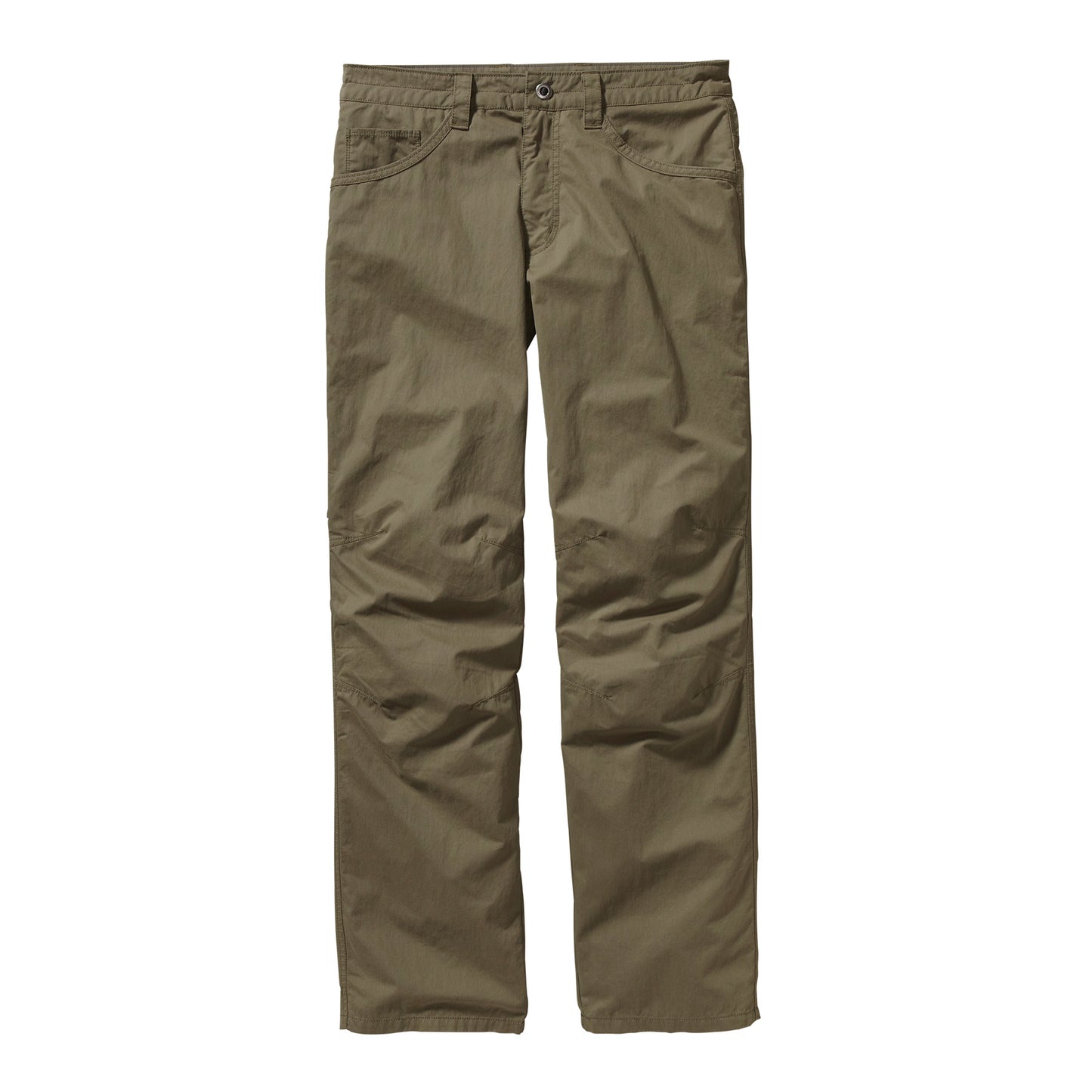 - Curved waistband contours to the natural shape of the hips, keeping pants in place during movement; metal button closure with zip fly