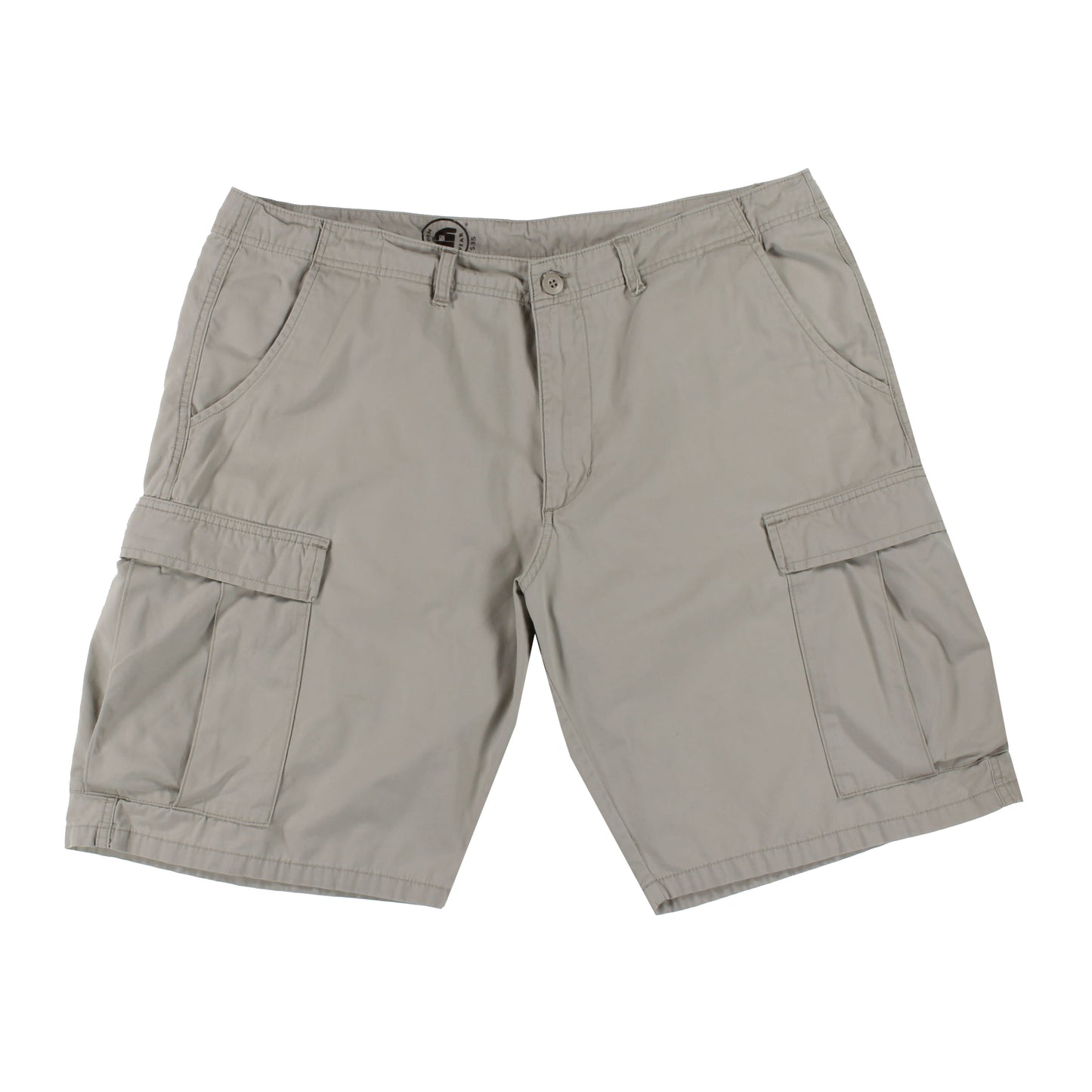 - Cargo shorts have flat-front styling, zip fly with button closure and belt loops; in solids and yarn dyes