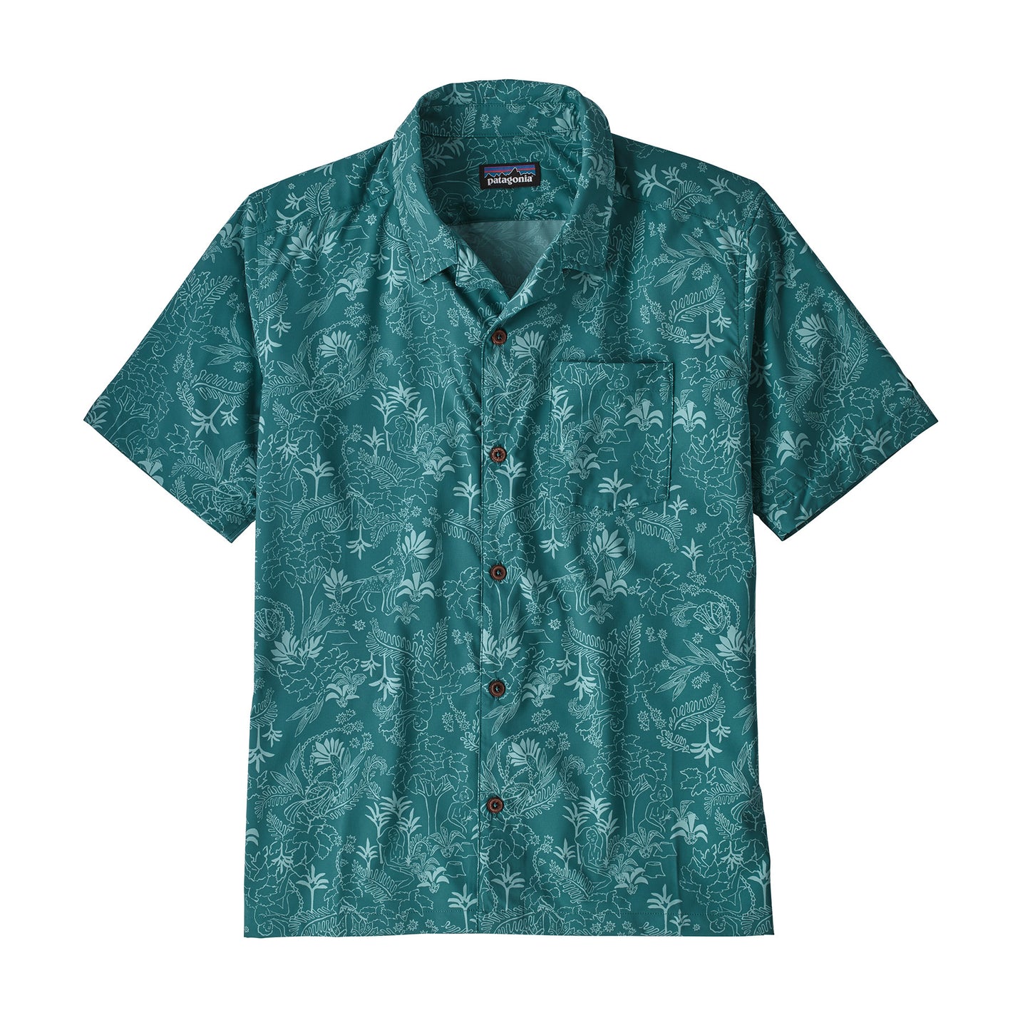 - Button-front shirt with coconut buttons and single left-chest pocket